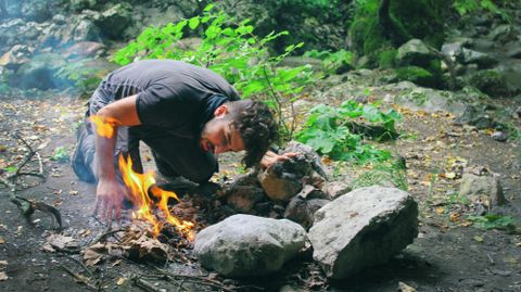 Feuer machen, draußen leben und Fähigkeiten erlernen, die tragen.
